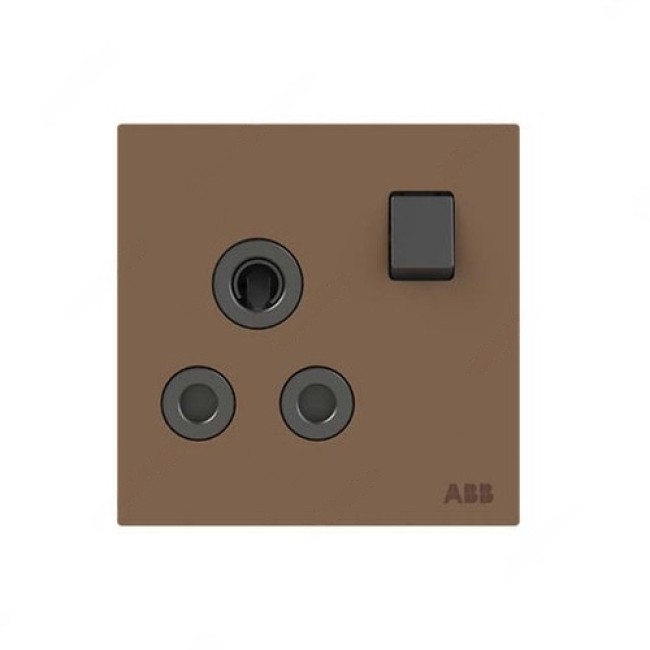 ABB Double Pole Round Pin Switched Socket, Millenium, 1 Gang, 15A, Mocha Brown - AM20986-MO